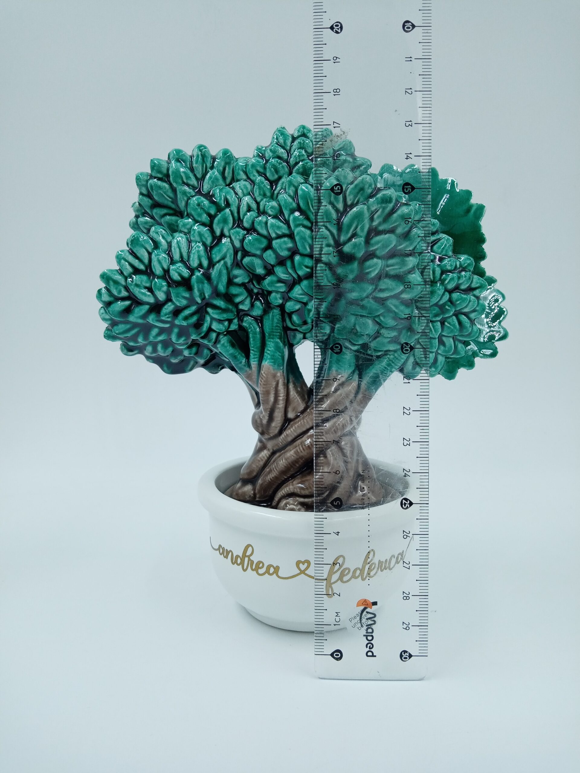 GIOIE DI PUGLIA – Albero di Ulivo Pugliese in ceramica di Grottaglie personalizzato con nomi altezza 18cm