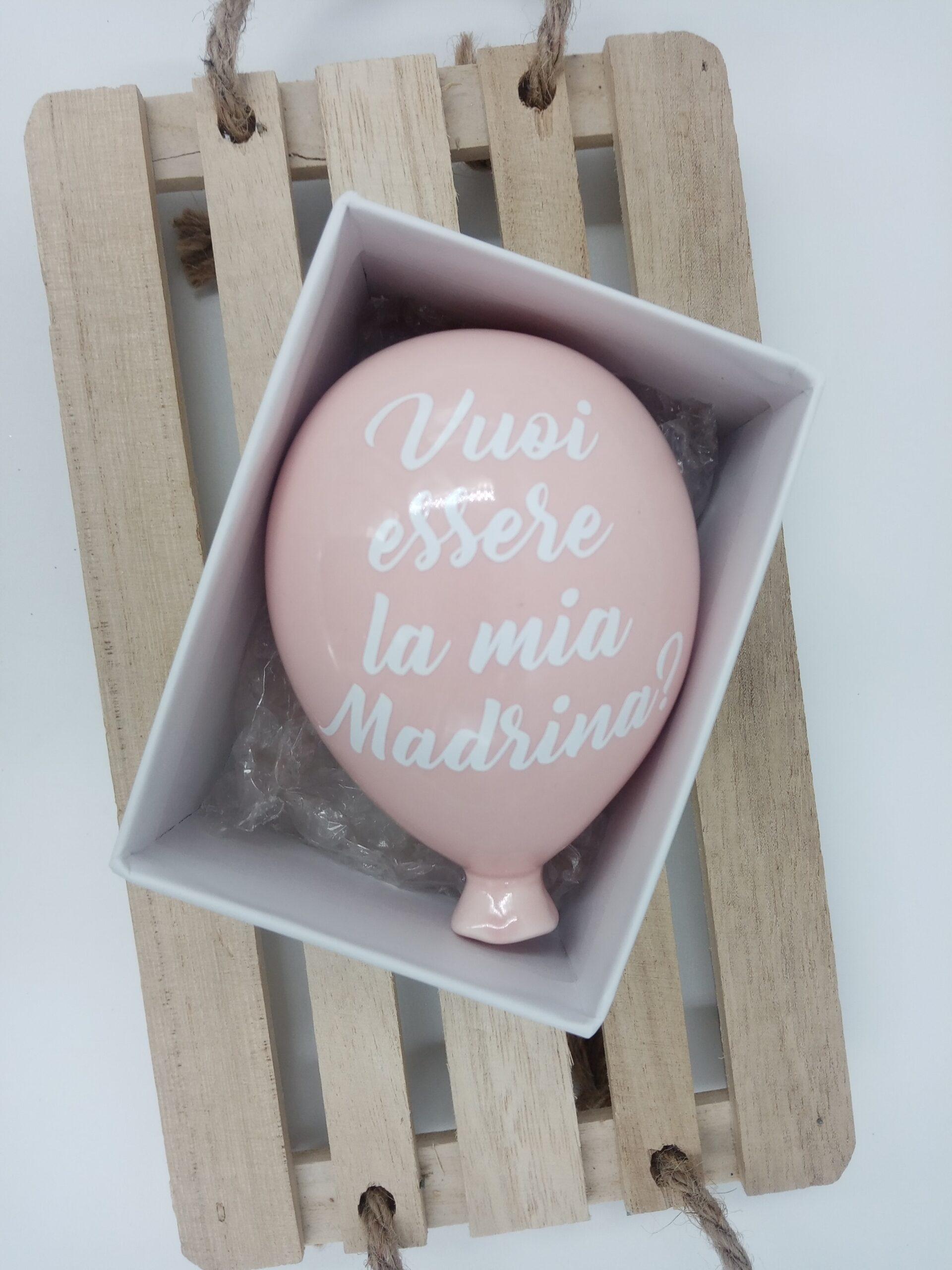 Bomboniera Palloncino in Ceramica “Vuoi essere Madrina-Padrino?”- Misura 10x7x6cm