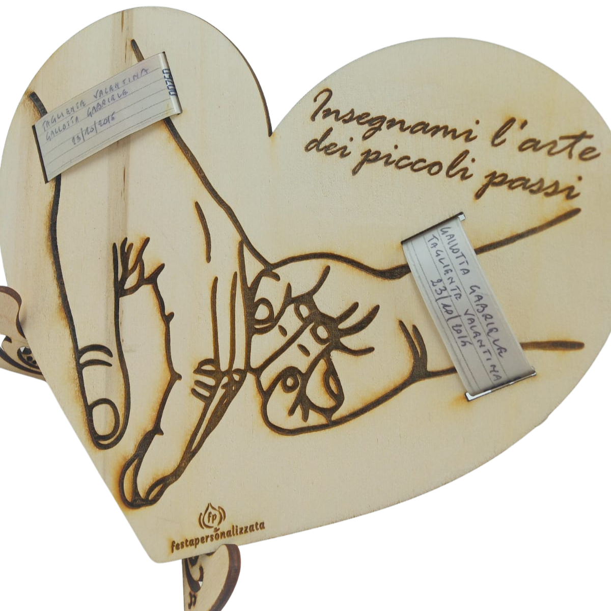 Celebra uno dei momenti più speciali della vita con la nostra Decorazione Quadro in Legno con Braccialetti Nascita, una splendida cornice che racchiude l’emozione della nascita. Realizzato in pregiato legno di pioppo, questo quadro incornicia i preziosi braccialetti della mamma e del neonato in un tenero design a forma di cuore.