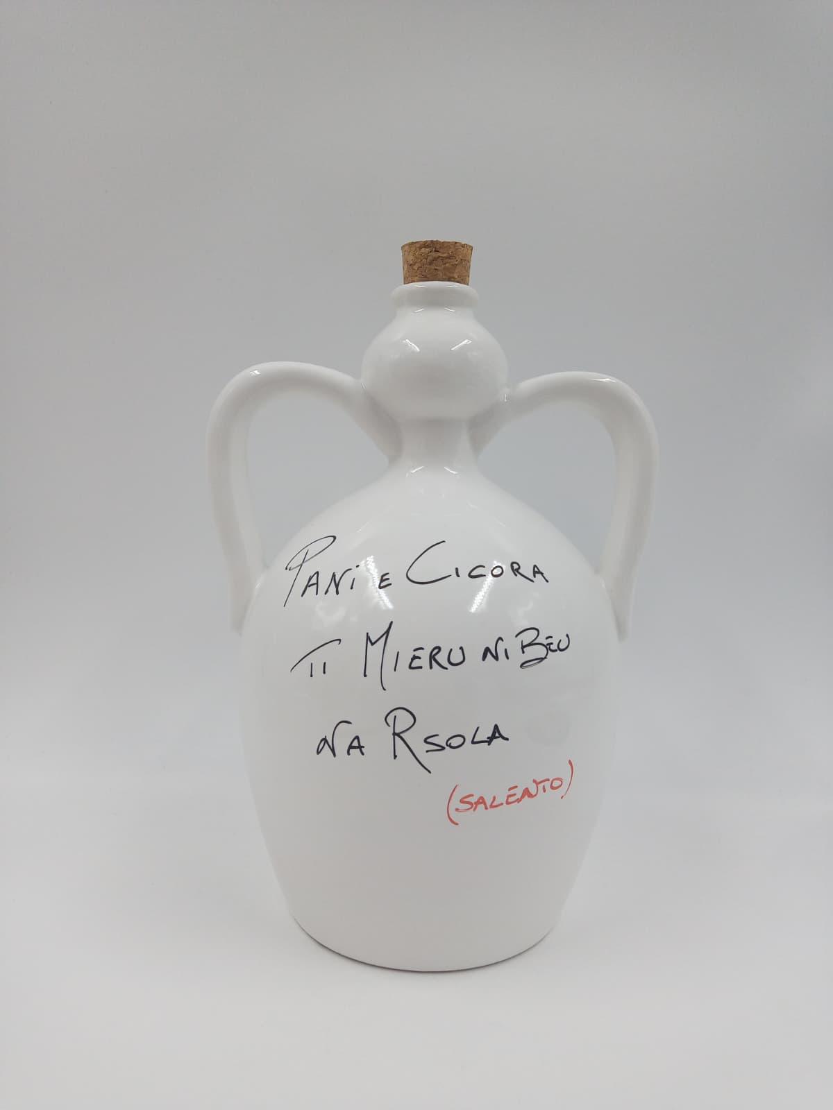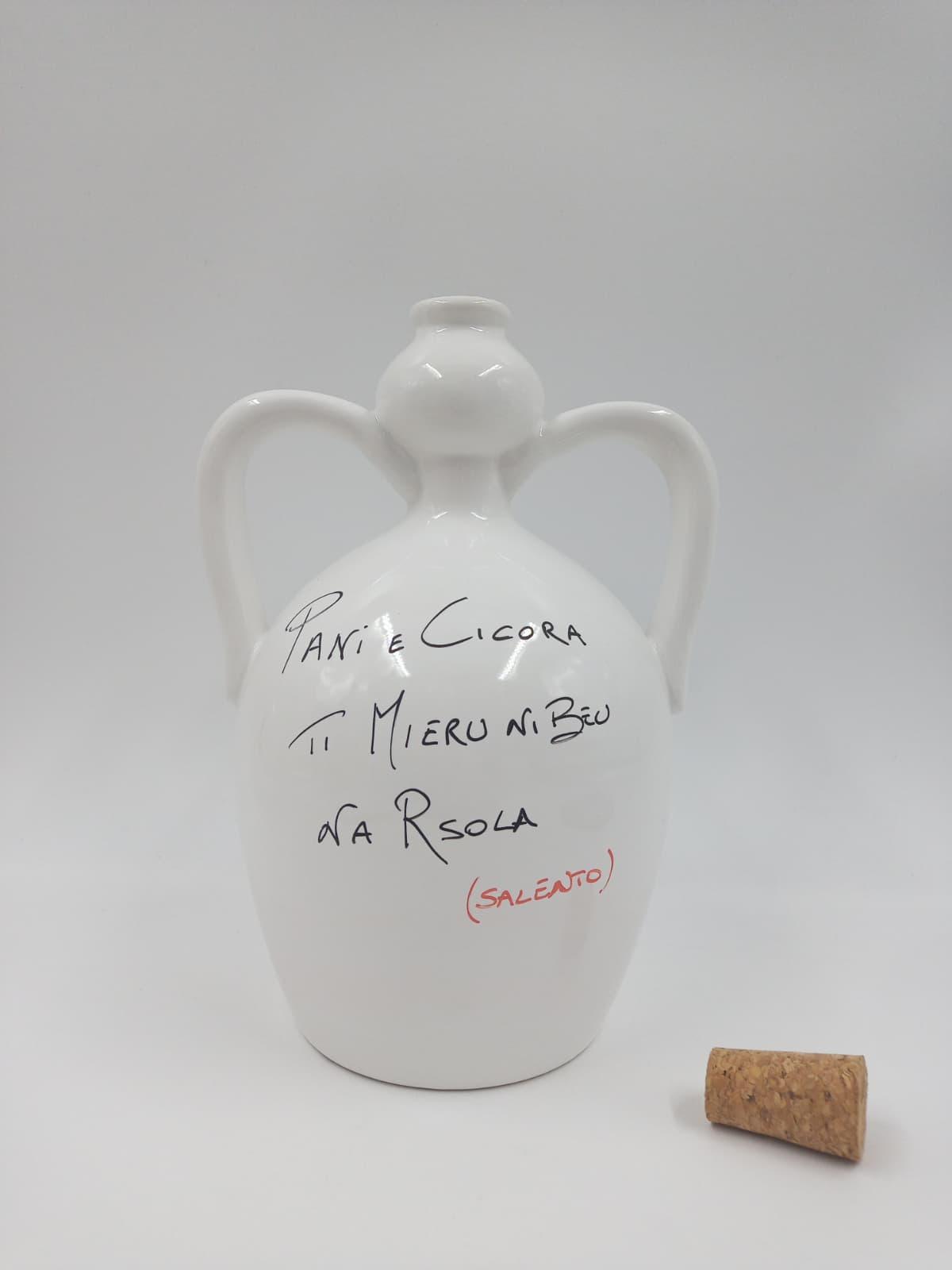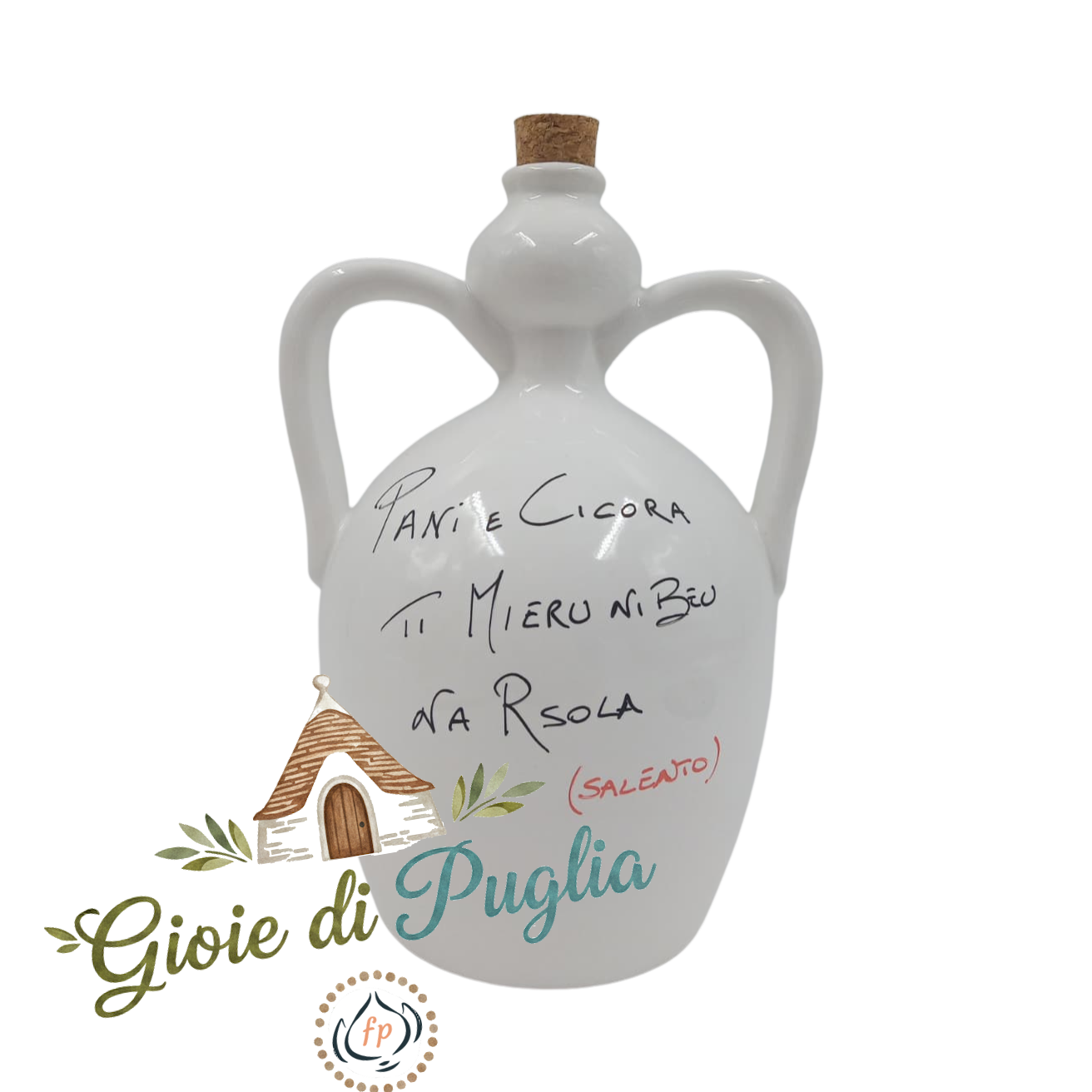 Con un’altezza importante di 21 cm, si impone per eleganza e solidità. Il vero punto di forza? La tua voce. Puoi scegliere di personalizzarla con i detti tipici pugliesi — per un tocco di folklore verace — oppure con un testo a tua scelta: nomi, date speciali o una dedica che renda questo oggetto un pezzo unico al mondo.