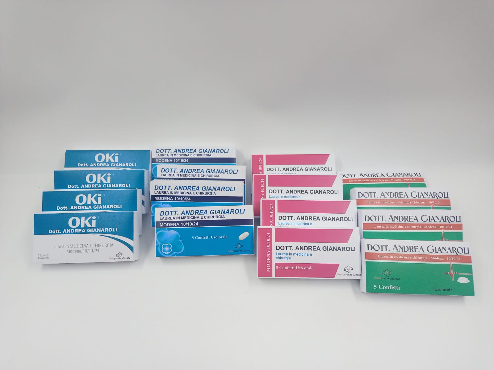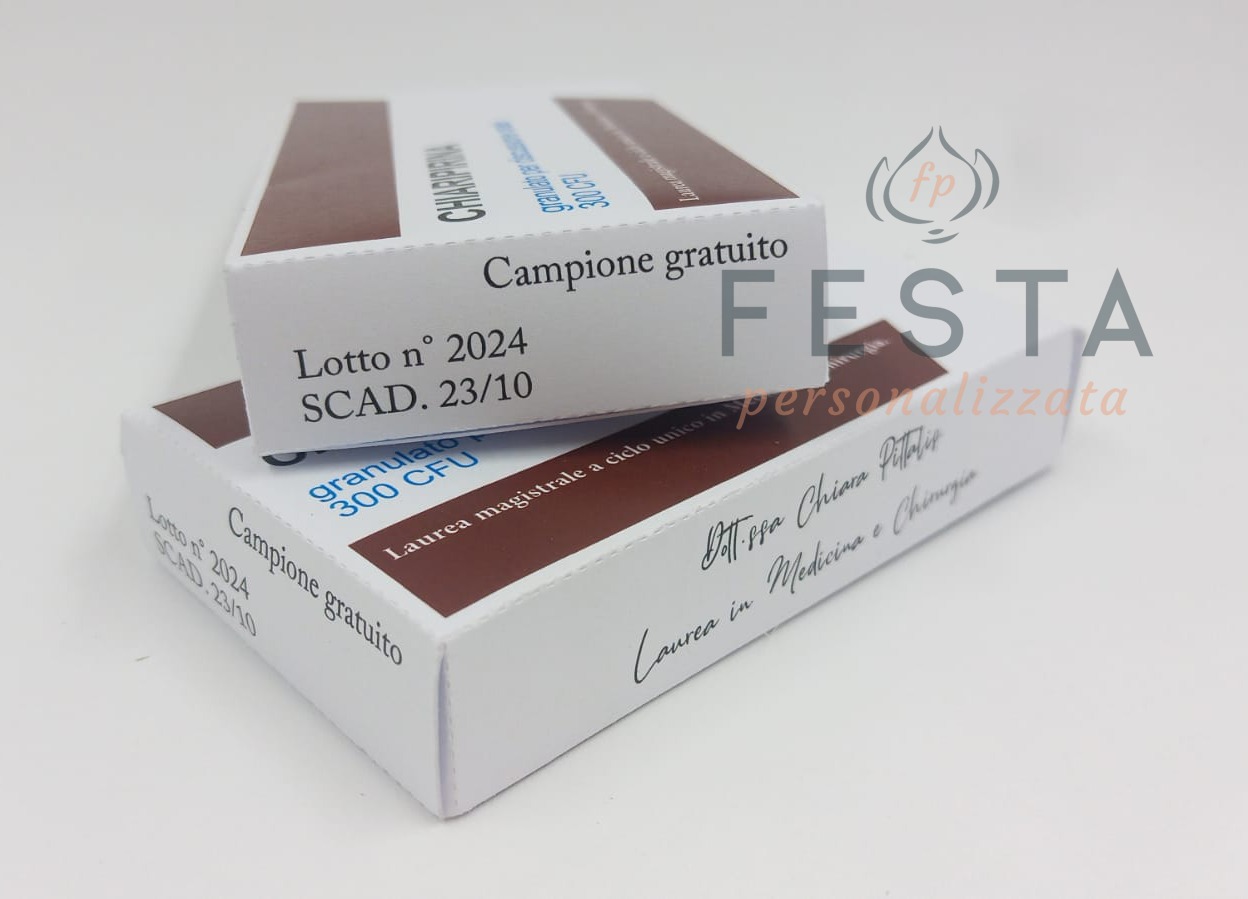 - Personalizzazione Completa: Possiamo realizzare qualsiasi grafica e qualsiasi testo sulle confezioni, rendendole uniche per il tuo evento.