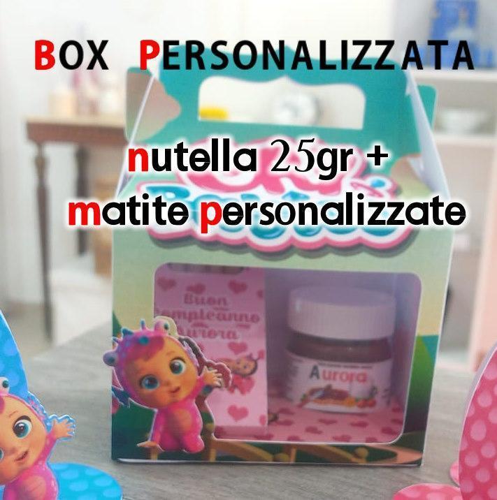 Potrai inserire il nome del festeggiato sulla nutellina o all’esterno con una grafica unica, proprio come la tua festa.