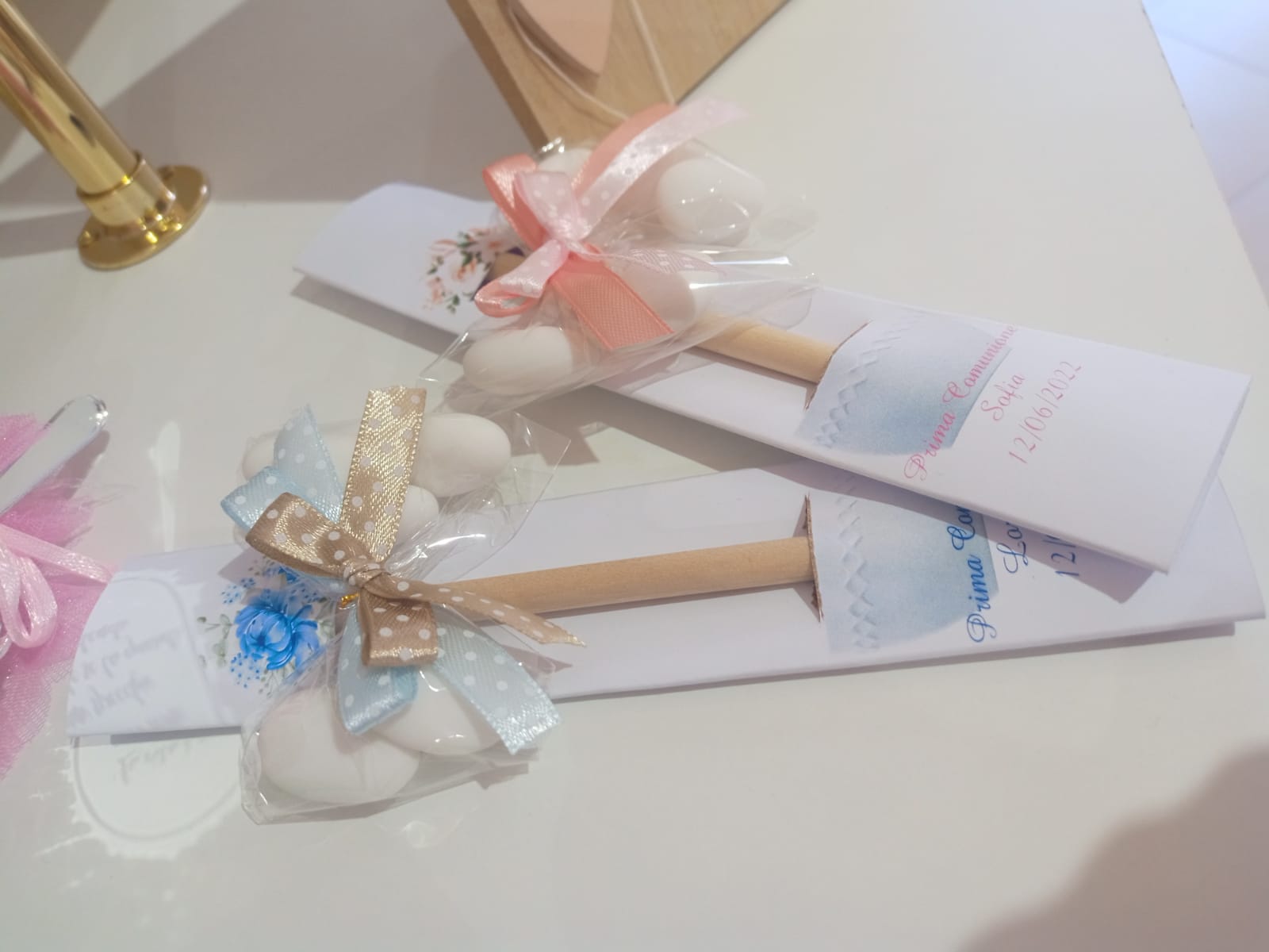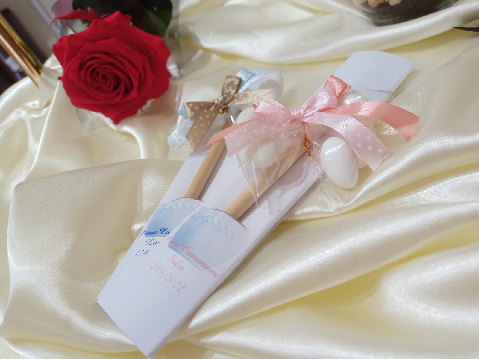 Il segnalibro può essere personalizzato scegliendo anche il colore del fiocchetto tra quelli disponibili ( Rosa, Celeste, Rosso, Verde, Nero e Bianco ) e la frase da inserire.